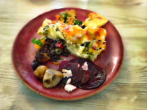 Die Begrüßung war durchaus freundlich und am Anfang wurden wir auch noch sehr intensiv beachtet. Nach der ersten Getränkebestellung jedoch ließ die Aufmerksamkeit nach und man musste entweder zum Tresen vor oder durch den ganzen Raum winken. Ab und zu mal eine kleine Runde, gerne auch ohne Nachfrage um dem Gast die Möglichkeit zu geben einen Wunsch zu äußern, wäre angebracht. Daher die 2 Sterne Abzug für den Service. Die vielfältigen Speisen auf dem Buffet waren definitiv selbstgemacht oder sehr gut eingekauft. Die klare Kommunikation der Herkunft der Lebensmittel sprach auch für ein Interesse für die Qualität, die dem Kunden angeboten wird. Dementsprechend war jede Komposition für sich solide und lecker zubereitet. Ein absoluter Reinfall war die rote Grütze zum Grießbrei. Diese war auf alle Fälle auch selber zubereitet, aber durch zu viel Stärke in der Rezeptur zu einem Kirschpudding geworden. Zusätzlich verwandelte die Stärke das Gericht in eine fast geschmacklose Substanz. Aus meiner Sicht hätten ein paar Waldfrüchte und weniger Bindemittel hier deutliche Verbesserung gebracht.