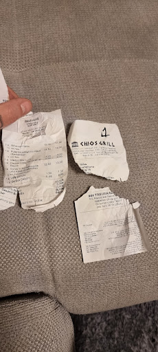 Ganz schlecht: Lieferant hat den Kassenbon zerrissen und im Treppenhaus auf den Boden geschmissen wo man auch unseren Namen drauf sieht und meine Handynummer. Das ist ein gravierender Verstoß gegen Datenschutzbestimmungen. (siehe Fotos)