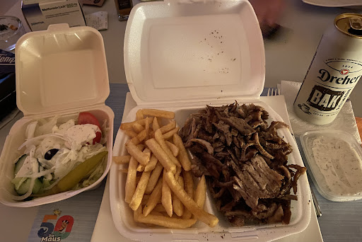 Das Gyros war trocken, überwürzt, die Portion zu klein und angesichts des Preises völlig unangemessen. Die Souvlaki-Spieße waren (wie in vielen Imbissen leider üblich) totgebraten und zäh. Die Pommes Frites waren offensichtlich ein billiges Tiefkühlprodukt ohne Geschmack oder Knusprigkeit.