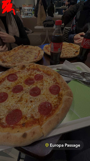 Read moreDigga, was für ein Brocken von Pizza! Für nur 12,90 € habe ich eine saftige, fluffige wenn auch etwas fettige Pizza "Quattro Formaggi" gegessen! Danach konnte ich mich kaum bewegen, also war das Menge-Preis-Verhältnis überraschend gut! Der Service war sehr freundlich und aufmerksam. Er bietet auch optional Knoblauch- und Chiliöl zum Verfeinern an. Wie bei so vielen anderen Läden auch, wird hier das Geld mit einzelnen Stücken verdient. Wer nicht komplett am Verhungern ist, muss sich darauf einstellen, dass er am Ende eine halbe Pizza mit nach Hause nehmen muss. Die Zubereitung ist recht gut und kann sich durchaus mit mancher Pizzeria messen. Das Ambiente ist wegen des ständig überfüllten "Food-Courts" natürlich hektisch, leicht unsauber und gar nicht komfortabel. Aber dafür kann das Geschäft...