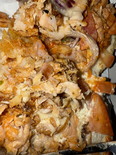 Fleisch: Note 4. Die verkaufen leider nur Drehspieß (= über 60% Hackfleischanteil , hat niedrigere Qualität als Dönerkebabfleisch) und selbst für Drehspieß war das Fleisch maximal durchschnittlich.