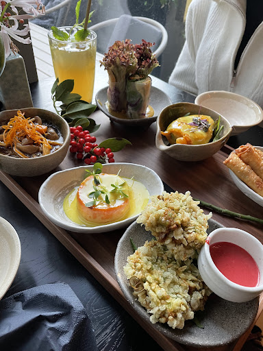 アジアン系ビーガン料理。スタッフの女性はとてもフレンドリーで、気が効く方でした。私はWabi Sabi Bowlを注文。色とりどりの野菜や揚げ豆腐、米の衣で揚げたボリューム満点の豆腐、沢庵の下に、柔らかめのうどん。日本人からすると柔らかすぎだけど、これはこれで美味しかったです。大食いの私でも、食べきれないくらいお腹いっぱいになりました。前菜も「天ぷら」と表記されてましたが、実際は野菜の「カツ」でした。カツだとこちらで通じないから天ぷらと表記してるのかな?ドイツでアジアン料理食べる際、イマイチなものが多い中、ここは独自のスタイルで美味しかったです。私のうどんに髪の毛が入ってたのでスタッフの方に伝えたらすごく申し訳なさそうに謝り、ちゃんと新しく作ったものを持ってきてくれました。更にデザートを全員分にサービスしてくれました。店内の大胆なデザイン、お水への配慮(グレープフルーツ入り)、清潔で鳥の囀りが聞こえるトイレ等、とても居心地の良い空間でした。