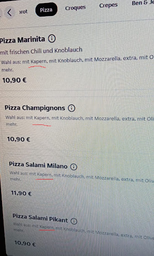 Super Nervig dieser Laden , Mo hat er nicht auf , die anderen Tage Macht er auch noch Mittagspause zur besten zeit , wenn man online Bestellt kann man beim croque nicht die Gurken weg lassen , die kommen auch noch Gestückelt drauf das man sie nicht mal ab Fummeln kann , es macht echt Mega Fun in seinem Essen rum zu Popeln und das Brot war zu hart das es zerbröselt ist , nie wieder , der Laden war mal deutlich Besser , eigentlich wollte ich noch eine pizza bestellen aber hab es gelassen weil ich gelesen hab überall sind kapern drauf