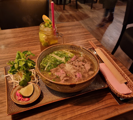 Cozy little vietnamese restaurant with friendly staff. I've had Pho Bo (Rice noodle soup with beef) and it was one of the best I've had in Hamburg. Rich tasty broth, not too salty and full of flavor. Good portion with optional herbs, sprouts and chili peppers. The homemade lime mint soda was also very good. Can...