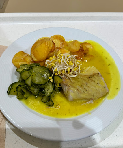 Ein weiterer Kritikpunkt ist die begrenzte Auswahl für Pescetarier, Vegetarier und Veganer. Fast täglich dominieren Fleischgerichte die Speisekarte, und wenn es mal eine pflanzliche Option gibt, muss man Glück haben, diese auch zu mögen. Einfache Alternativen wie Nudeln mit Tomatensoße oder eine Veggie-Wurst wären schon eine große Hilfe. Es ist bedauerlich, dass die Kantine in dieser Hinsicht nicht zeitgemäß ist.