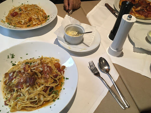 Ich kann nur sagen, die TK Pizza vom Discounter neben an schmeckt nicht nur besser, sondern jeder bekommt es denke ich hin die nicht verbannt zu servieren. Die restlichen Mahlzeiten waren komplett versalzen, Geschmacklos und/oder Sauer. Hier wird definitiv billig eingekauft, schlecht zubereitet und unsympathisch Teuer verkauft.
