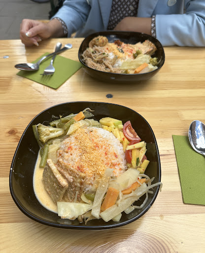 Let me say, if I can recommend this resto, I can give 10 stars when possible. Here is the reason: Cozy place : small but it was a new resto but you can feel comfortable with all those environments. The food tasted so delicious, they tasted like ' street food' in hygiene standard, they cook everyday in different menus, so you will not find a menu like other typical resto here, it was served from the counter food ( few different cooking) and you can choose. The traditional food taste from Indonesia. So try it and you will never regret it. The staff was very friendly. Omaigosh they connect to every customer stopped by. The area was not too far from pflanten en blumen because this big area is always my fave place to bring my family there. Just walked like 10 minutes and...