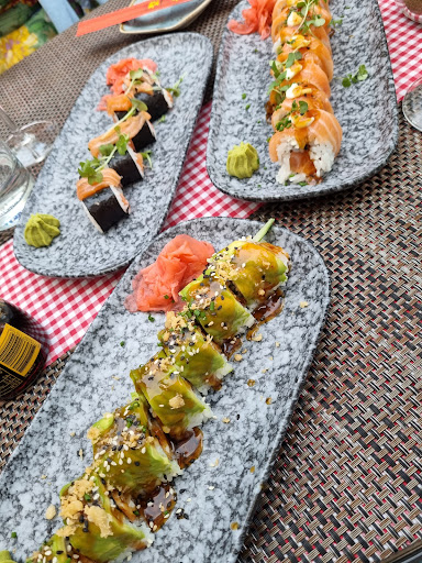 Wir wurden freundlich begrüßt und unser reservierter Tisch wurde uns zugewiesen. Die Tische waren dabei schön eingedeckt und der außenbereich sehr schön gestaltet. Wir beschlossen vorweg einen Aperitif zu trinken und bestellten diesen. Ich hatte hierbei den, in der Speisekarte benannten, "alkoholfreien Aperitif" bestellt. Die Kellnerin befragte mich darauf welcher es denn sein solle. Das hat mich ein wenig verwirrt, denn der Aperitif ist doch so in der Speisekarte benannt. Nach kurzer Klärung war die Bestellung abgeschlossen und die Getränke kamen zügig an unseren Tisch. Als ich meinen "alkoholfreien" Aperitif probierte, stellte ich fest, dass dies der Aperitivo Rosato Spritz sein musste, den einer meiner Begleitungen bestellt hatte. Verblüfft tauschten wir dann unsere Getränke aus, sodass ich meinen alkoholfreien Aperitif bekam. Nach kurzer Zeit kamen auch dann die bestellten Speisen. Das Sushi war sehr gut und schön angerichtet aber insgesamt auch nicht deutlich besser als das der bekannten großen Sushiläden. Der Burger war auch geschmacklich gut, hat uns aber nicht wirklich vom Hocker gerissen. Wir kennen Foodtrucks und sogar einen Freizeitpark in Norddeutschland, bei welchem dasselbe geschmacklich sowie qualitativ zu einem deutlich niedrigeren Preis angeboten wird. Die Aufmerksamkeit unserer Bedienung ließ nachher etwas nach weshalb man diese teilweise suchen musste um noch etwas zu bestellen oder die Rechnung zu ordern.