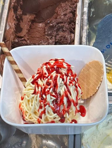 Aber was garnicht geht ist das Personal.. drei Leute hinter der Theke.. Zwei Mädels haben sich mehr in den Haaren rum gefummelt als bedient und vom Ablauf her auch keine Ahnung gehabt, geschweige denn irgendeine Ahnung , was wie zubereitet wird oder wie z. b eine Eis tüte gefüllt wird. Das braunhaarige Mädel hatte eigentlich alles allein zu wuppen und auch den Laden am Laufen gehalten.. Eigentlich ne schöne kleine Eis Diele,aber der Service gehört halt einfach auch...