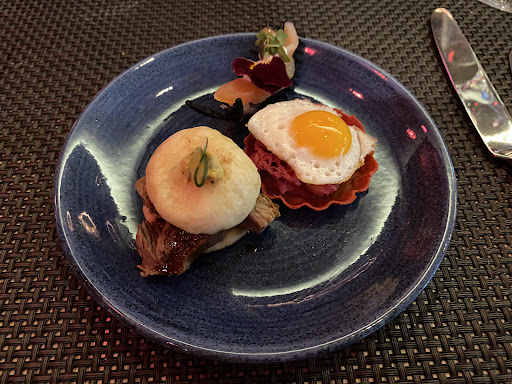 Read moreWir waren zum Sylvesterdinner dort. Als erstes muss ich sagen, dass das Essen selbst wirklich absolute Spitzenklasse war. Die Köche haben eigentlich 6 von 5 Sternen verdient. Auch die Servicekräfte waren freundlich und aufmerksam. Was mich allerdings enttäuscht hat war die Herrichtung des Raumes. Es war ein Sylvesterdinner für 195 € pro Person, daher hatte ich etwas erwartet. Der Raum war allerdings ohne jegliche Deko, es gab überhaupt kein Sylvesterfeeling. Es sah aus, als wäre man an einem gewöhnlichen Montagabend essen. Absolut nichts, was einem einen besonderen Abend vermittelt. Auch die Servicekräfte waren ganz normal gekleidet und ganz normal im Umgang. Das fand ich schon sehr schade und was wir hören konnten, die Gäste in unserer Umgebung auch. Hinzu kam, dass uns zu Beginn ein Wasser angeboten wurde, aber nicht gesagt wurde, dass das extra kostet. Dies wurde dann mit 6 € pro Person abgerechnet. Das fand ich unpassend, bei dem Preis hätte ein Wasser ruhig mit drinnen sein können. Dass Wein etc. extra geht ist klar und völlig ok. Alles in allem ein tolles Essen, nettes Personal, leider überhaupt keine Atmosphäre. Daher 6 von 5 Sternen für die Köche, 4 für den Service und 2 für die kühle und stimmungslose Atmosphäre....