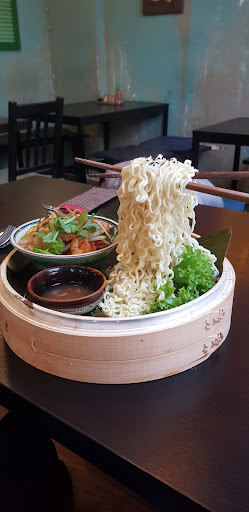 Super toller Laden! Noch bisschen Chaos aber dafür ist der Laden ja neu ;) - noch nichtmal 4 Wochen offen- Das Essen ist sehr Authentisch angerichtet, ich war 5 Wochen in Vietnam und kann dies daher auch mit sicherheit sagen. Finde zum Beispiel sehr gut das Bun cha angerichtet wird wie es gehört. Also das Fleisch in der Sosse in einer Schale, daneben die Reisnudeln und der Salat. Viele Vietnamesen machen den Fehler es "deutsch" zu servieren und einfach alles in eine grosse Schüssel zu schmeissen. Das nimmt sehr den Geschmack des eigentlichen Gerichtes. Es gibt dieses Gericht auch mit Ente, nennt sich dann bun Viet, auch sehr super. Die Reisnudeln sind auch auf gute länge geschnitten, hat man auch nicht immer und dann ist das Essen mit den Stäbchen schwer :D Dadurch das der Salat extra liegt wird er auch nicht warm sondern bleibt knackig frisch! Die Kellner sind alle super freundlich und sehr bemüht, ihr deutsch ist auch sehr gut :) Desweiteren erklären sie auch gerne den Kunden wie sie das Gericht richtig Vietnamesisch isst, vielleicht gut zu wissen für alle die sich was neues trauen wollen, aber unsicher sind wegen der Authentischen Küche, die Mädels und Jungs dort sind sehr offen und beantworten jede Frage sehr gerne und ehrlich. Die Gerichte sind meiner Meinung nach ausreichend könnten aber ein wenig grösser sein ;) Geschmacklich kann man aber keineswegs meckern, habe jetzt schon 4-5 verschiedene Gerichte gegessen und alle waren super toll. Bin sehr begeistert. Das Restaurant selbst hat einen wunderbaren Charm, drinnen sieht es aus wie in Vietnam. Also so wirklich. Ich bin reingekommen und fühlte mich wie in meinem Urlaub zurück gesetzt. Es ist mit viel liebe dekoriert und fertig gemacht. Draussen kann man auf richtigen Vietnamesischen hockern sitzen, wie in den streetfood Läden in den Straßen Hanoi's oder allgemein Vietnams. Finde wunderbar wie viel sie aus Vietnam extra importiert haben, um uns einen Flair ihres Landes zu geben! Also dicke 5 Sterne für den Laden! Ich hoffe er kann sich...