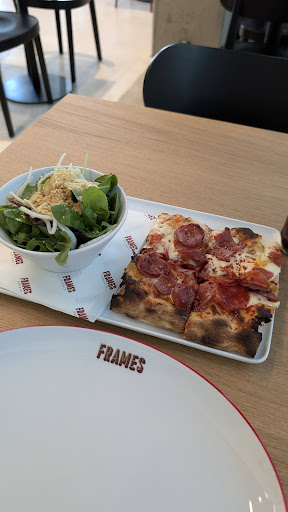 Das Restaurant ĂŒberzeugt auf ganzer Linie mit einer Kombination aus hervorragendem Essen, schnellem und aufmerksamem Service sowie einem stilvollen Ambiente. Wie auf dem beigefĂŒgten Bild zu sehen, genoss ich eine perfekt zubereitete Pizza Salami, die offensichtlich super frisch aus dem Ofen kam. Der knusprige Boden und der saftige Belag zeugten von einer hohen QualitĂ€t der Zutaten. Die begleitende SalatschĂŒssel mit frischen BlĂ€ttern und einem ansprechenden Topping rundete das Mahl perfekt ab und unterstrich den Anspruch an Frische und QualitĂ€t. Der Service war bemerkenswert gut und schnell. Von der Bestellung bis zum Servieren der Speisen verging kaum Zeit, was besonders angenehm war. Das Personal agierte sehr aufmerksam und freundlich, was zu einer rundum angenehmen AtmosphĂ€re beitrug. Auch die Einrichtung des "The Frame" ist hervorzuheben. Sie prĂ€sentiert sich modern und hochwertig, was eine einladende und komfortable Umgebung schafft, in der man sich sofort wohlfĂŒhlt. Insgesamt kann ich das "The Frames" in Hamburg uneingeschrĂ€nkt empfehlen. Wer auf der Suche nach frischer, qualitativ hochwertiger Pizza und exzellentem Service in einem stilvollen Ambiente ist, wird hier definitiv fĂŒndig. Ein...