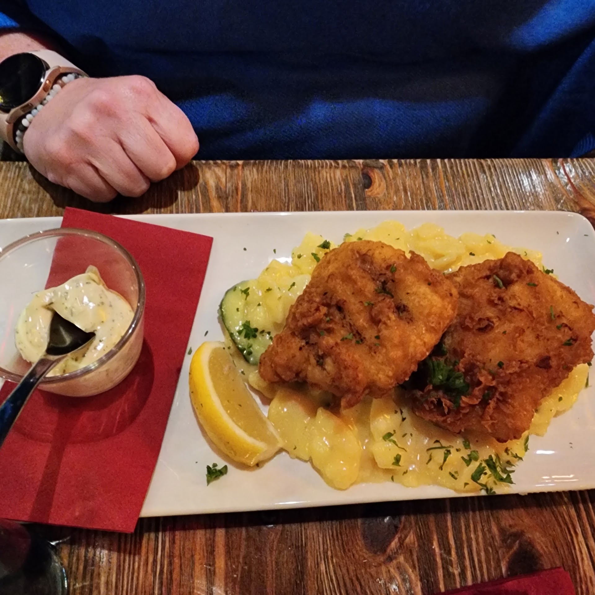 When the food arrived, we were genuinely surprised at the size of the Wiener schnitzel. It barely covered half the plate. For the price, you'd expect something more generous, especially for a dish that's usually known for its size.