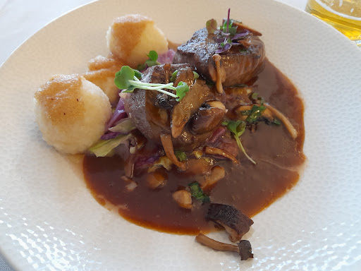 Read moreWaren heute zum weihnachtliche Ente essen dort. Haben uns sehr gefreut auf eine knusprig gebratene 1/2 Ente mit entsprechenden leckeren Beilagen wie Rotkohl und Klöße. Es war noch recht früh, ca. 17.00Uhr und das Lokal war noch wenig besucht. Wir mussten nicht lange auf unser Essen warten. Aber was dann kam war alles andere als eine knusprige Ente. Erstmal waren die Hälften SEHR unterschiedlich - meine Hälfte war niemals eine halbe Ente. Von knusprig braun war nichts zu sehen. Sie war hell und die Haut weich und wabbelig, die Maronen waren kalt. Habe trotzdem etwas probiert … zu guter letzt war sie auch noch völlig fade - war nicht zu essen. Wir haben die Bedienung informiert, dass wir etwas anderes erwartet hätten, sie entschuldigte sich und nahm das Essen mit um es nachbessern zu lassen. Nach angemessener Zeit kam das Essen zurück, die Ente war dunkler aber noch immer nicht wirklich knusprig. Jetzt lag die Ente auch noch im nach meinem Geschmack viel zu sauren johannisbeergelee, das sicher zum kleinen Bratapfel gehört hat und der Rotkohl sowie die Klöße waren abgekühlt. Die Soße erinnerte mehr an eine einfache Geflügelsosse und ließ den typischen Entengeschmack vermissen. Am Ende habe ich die Minikeule gegessen den Rotkohl (war sehr gut!) und etwas Kloß - mehr war mir nicht möglich. Das war mit Abstand die schlechteste Ente - die nicht nach Ente schmeckte - die ich je gegessen habe. Wäre das Restaurant voll gewesen, hätte ich es mir noch erklären können, dass Gerichte mal nicht so perfekt die Küche verlassen, aber es waren (noch) kaum Gäste da, von Stress keine Spur. Natürlich habe ich der freundlichen Bedienung meinen Ärger mitgeteilt und sie bot einen Kaffee oder ein Schnäpschen als ‚Entschädigung‘ an. Aber ich möchte keine Entschädigung - wenn ich Kaffee oder Schnaps trinken möchte, dann bestelle ich mir einen. Ich möchte das bekommen, was ich bestellt habe und das in einer akzeptablen Qualität. Der Preis von 39€ war definitiv völlig überzogen und unangemessen oder besser gesagt unverschämt. Der Preis ist über dem Durchschnitt !!! Keine Empfehlung!!!! Ente gibt es woanders viel besser und...