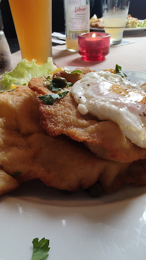 Die ausgesprochen freundliche Bedienung und das richtig leckere Essen, haben den ersten Eindruck schnell wieder wett gemacht. Photos haben wir leider vergessen zu machen, daher nur die wörtliche Beschreibung dessen, was für uns in der Küche gezaubert wurde. Während wir einen kleinen Salat und den kleinen Antipastiteller genossen, hörten wir, wie in der Küche das bestellte Wiener Schnitzel ordentlich "verdroschen" wurde. Der Salat mit der Zwiebelvinegrette (sehr lecker!) und die Antipasti, die überraschenderweise warm serviert wurde, sind wirklich zu empfehlen. Normalerweise esse ich keine Auberginen, hier habe ich nicht eine liegen lassen. ☺️