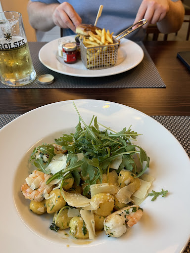 Read moreDas Hotel ist super und exklusiv. Dann geht man davon aus, dass das auch das Restaurant betrifft. Nur ist leider das Gegenteil der Fall. Obwohl nur drei Tische besetzt waren, mussten wir 45 Minuten auf unsere Burger warten. Diese waren dann aber auch trocken, die karamellisierten Zwiebeln fehlten, das Fleisch war totgebraten und der Käse inzwischen hart. Die Servicemitarbeiterin schaute nur verlegen, nachdem wir freundlich Kritik geäußert hatten und es kam keine Entschuldigung, kein "ich gebe das dem Koch weiter", von einer Kompensation mal ganz abgesehen. Immerhin haben wir nur die Hälfte gegessen. Auch schafften es die fünf Servicekräfte so abwesend zu sein oder im Raum die Tische zu decken ohne mal zu fragen oder schauen, ob die Gäste noch etwas benötigen, so dass man wild winkend und rufend auf sich aufmerksam machen musste. Dafür ist es viel zu teuer (18,50 Euro pro Burger) zudem war der Raum bei 6 Grad Außentemperatur nicht geheizt und es...