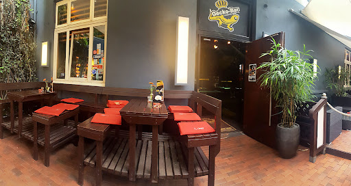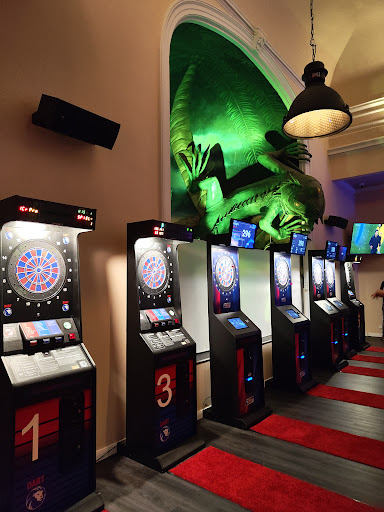A fun, modern culture focused location. The walls have multiple film and gaming characters posed around them and the main focus is a large dragon. There are a large number of Pool tables and a few Dart boards for casual games. Drinks are fairly priced and service is quick. If you're planning a private event they have a closed backroom (with a really cool sliding door which opens with a code) where you have a private bar, karaoke and a lot more seating / dancing room! It's a bit out the way from central Hamburg but very recommended...