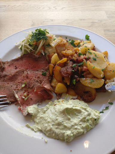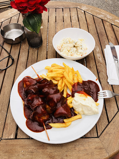 Beim letzten mal hatte ich wieder ein halben Hahn der mir Trocken schmeckte, der Kartoffelsalat war immer noch der aus dem Eimer von einem Großhandel, die von meinem Kollegen bestellte Currywurst war wie die letzten Male, nicht lecker und aus der Friteuse. die Pommes waren wieder gut.