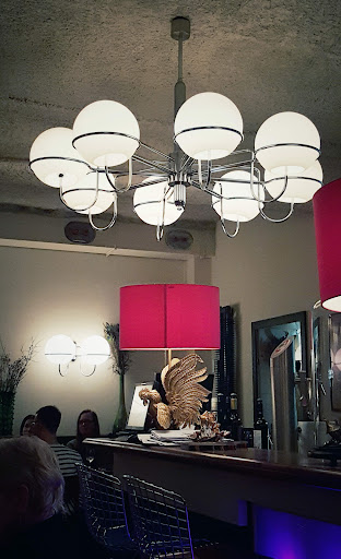 Die Einrichtung mit Gegenständen von Reisen des Besitzers oder dem Trödel verleiht dem Restaurant einen gewissen Charme. In diversen Schränken befindet sich zudem eine umfangreiche Kochbuchsammlung, die mich aber nicht zum näheren Begutachten eingeladen hat. Vor dem Restaurant befindet sich eine Terrasse mit weiteren Sitzplätzen und Schirmen. Auf die engen Toiletten sollte man sein Handy mitnehmen, da die Beleuchtung über einen manuellen Lichtschalter am Eingang gesteuert wird. Meine Frau fand plötzlich im Dunkeln sitzen nur begrenzt witzig ; )