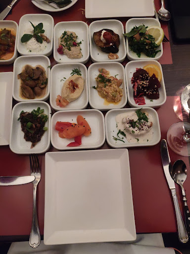 We have been planning to go here from long time so we decided to go on a weekday. It was not overly crowded and the staff was very very friendly , helped us with our coats and all at the entry. We all could speak enough German but probably seeing us make mistake, they offered to help in English. There was a tiny snack to begin the dinner with, it was something I can’t describe in words. Later on we got the wine and they helped in choosing a good one for our requirements. We decided to go with classic Lebanese starters, all vegetarian and we got taste of a lot of food. All of it was such a treat to our senses. Then instead of going for one main course for each one of us, we got bigger portions of some of the most liked vegetarian starters and filled ourselves more with those. Forgot to take a picture of dessert because we just jumped on it, It was a combination of Lebanese baklavas. Nothing more I can ask for honestly. We left late at night when they were closing and that’s how much we enjoyed the evening. Would keep on going...
