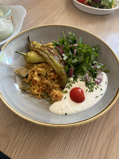 A changing menu of German & global dishes for lunch in an airy venue with a shady garden terrace.