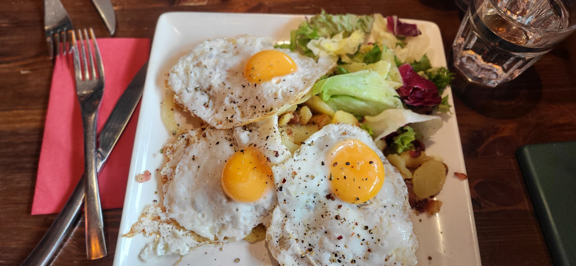 The menu itself had plenty of choices for vegetarians and carnivores alike, while not overwhelming you with options. I settled quickly on a classic German dish I have never tried beforeâ saftiges schweineschnitzelâ which translates to âjuicy pork schnitzelâ. And juicy it was. The thin pounded pork held reams of flavor encased in a delicately crisp breaded crust. A lemon wedge provided the perfect amount of acidity when juiced over the fillet. While this delectable piece of meat could stand perfectly well on its own, a nicely sized dish of creamy mushroom sauce ushered in another world of flavor and texture. The slivers of potato accompanying the schnitzel were seasoned to perfection and exactly the right amount of crisp on the exterior with a smooth, buttery inside. The food was delicious, and after a long day of exploring the city hit just the right spot. It was almost too easy to join the clean plate club. All the dishes came out quickly and were obviously crafted with care and skill.