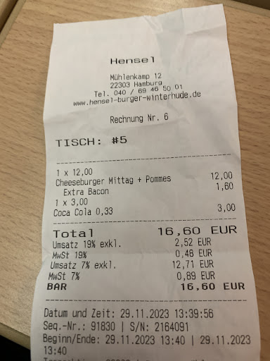 When ordering a burger for delivery, it often arrives with the bun mushy and the fries not crispy anymore. Not here. I ordered at Hensel Burger the first time end of 2021 and have become a regular since then. I live ~3km away from Hensel Burger. Every. Single. Time the burger arrived steaming hot, the bun toasted and crispy, the patty still medium and the fries still crunchy. And the taste of the burgers is incredibly yummy, I especially like their "superfood salad" on the burger which, because of the kale, gives it a nice extra crunch. Also their vegetarian burger options are great and don't make...