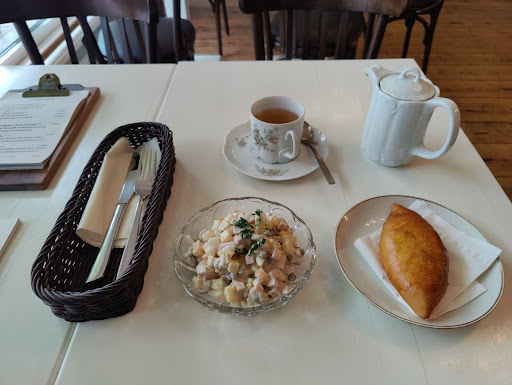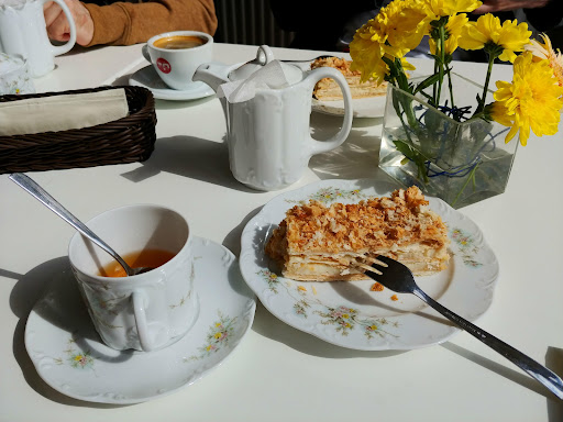 Small but cosy and stylish cafe with home-made meals. The lunch offering is varied. I had fish that was tender and delicious and the potato side was tasty. My colleagues were also very satisfied with marinated pork they took. We rounded the lunch with a famous Russian cake "Napoleon" which was made by the cafe owner herself on family recipe - tasted just like the best classic Napoleon cake should taste. The tea was delivered in elegant china service - rare estetic pleasure these days which I totally miss while going out. Will definitely return with my family...