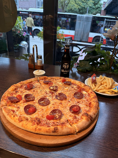Read moreOrdered the 40cm Sucuk pizza with spicy Turkish sausage, crispy crust, cherry tomatoes… basically a love letter to my cheat day. Added fries and a cold Fritz-Kola for just over €20.