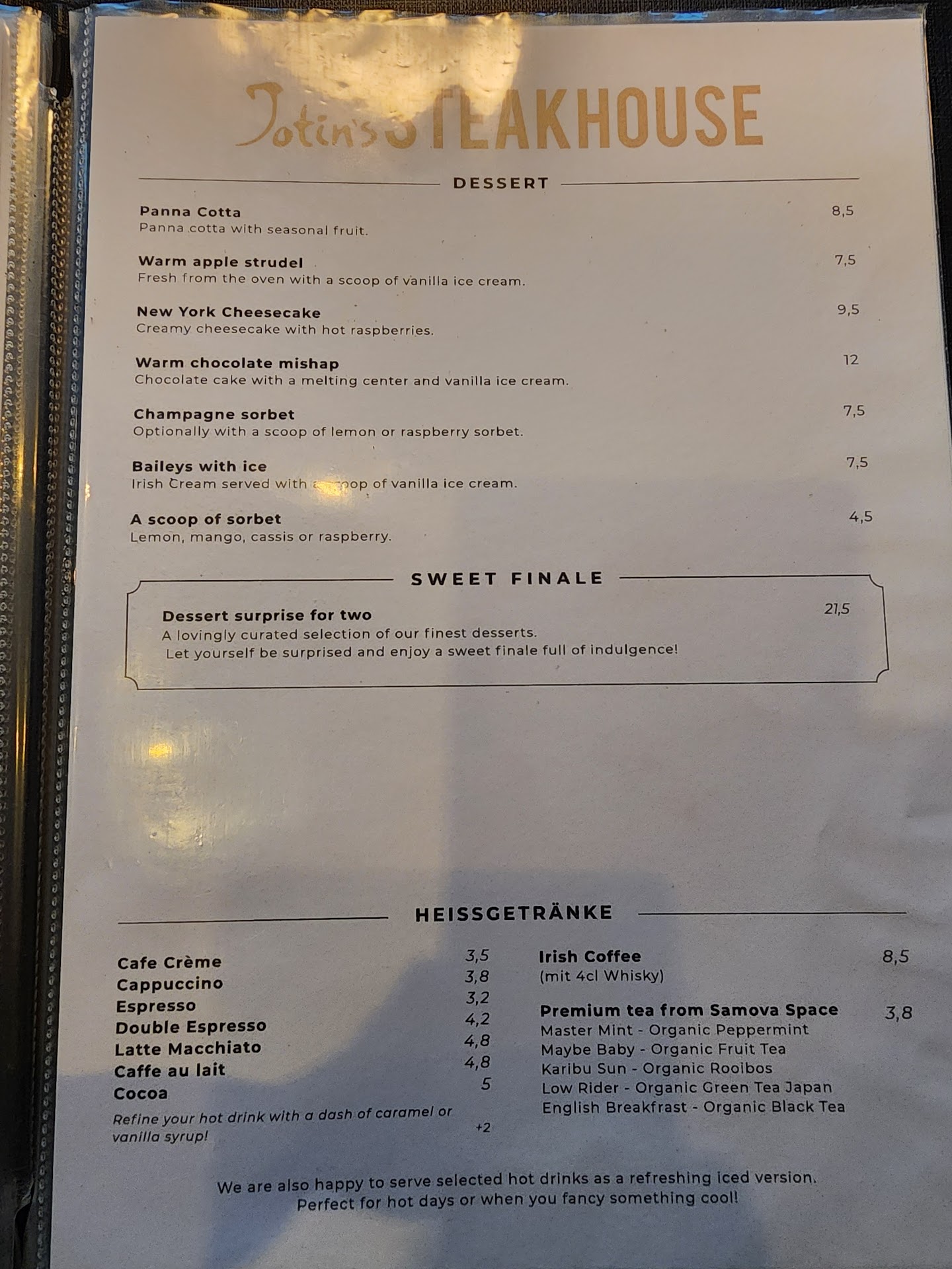 At Jotin's STEAKHOUSE St.Georg, we enjoyed a delightful dinner in an atmosphere conducive to extended conversation, offering a refined yet comfortable dining experience. The attentiveness of the servers further enhanced our evening. Our meal included Wiener Schnitzel (veal), lamb filet, potato soup, garlic bread, rice, sweet potato fries, and water. Each dish was delicious, with the lamb filet and sweet potato fries standing out as particular highlights. The potato soup proved to be both satisfying and flavorful. While the Wiener Schnitzel was well-prepared, it wouldn't be my first choice on a return visit. A minor point of contention arose from the pricing. The restaurant's website, presented in German, displayed prices that differed significantly from those encountered on the menu, leading to an unexpected increase in our bill. Furthermore, main courses are served without accompanying sides; our waiter thoughtfully clarified this when we initially ordered, prompting us to add several side dishes. Despite these minor discrepancies, the overall culinary experience was certainly worthwhile. Jotin's offers truly delicious food within a...