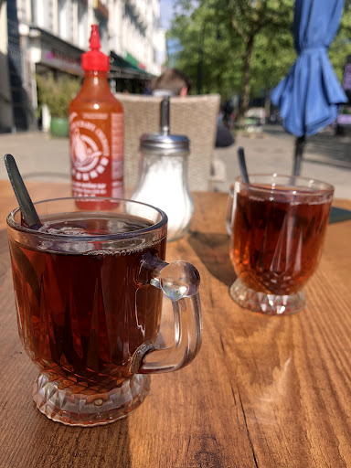 Cay gibt es da auf Haus. Hab den Lammspiessteller bestellt. Das Lammfleisch war auf dem Teller verteilt dazu kann man wahlweise Pommer oder Reis bestellen. Kleiner Salat dazu. Service ist nett. Der Lammspiessteller kostet 14.99 Euro. Dazu eine Dose Cola Zero 2,50 Euro Essen war gut gewürzt. Ein paar Teile zu trocken aber in der Summe stimmt Preis-Leistung. Daher 4 Sterne.