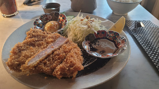 For starters, about the food: I had the Tonkatsu. The mayonnaise sauce stood out as a bit unconventional—it had shichimi mixed with Kewpie mayo, which wasn’t entirely my taste but still acceptable. The real highlight was the tonkatsu! It was thick, tasty, and very satisfying for the price. While it wasn’t as crispy as it could be and slightly moist, these are minor details of me being picky since I am comparing with the best ones in Japan. The tonkatsu sauce with sesame and the crispy lettuce salad with a great dressing tied everything together amazingly.