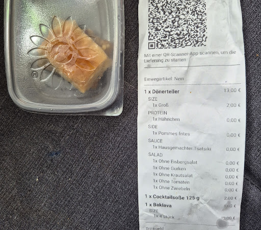 Ich bin Schüler 14 Jahre alt der Döner lecker lecker lecker und lecker 😋 😋 😋. Vertraut, 5€ Döner Rabatt als Schüler und beschweren kann man sich kaum!!! Der Döner war für die Verhältnisse von heutzutage sehr groß, viel und köstlich.Der Döner hat echt geschallert! Immer wenn ich zurückdenke, dass ich dafür nur 5€ Euro bezahlt habe, dann erfüllt es mich immer mit großer Freude! (Heutzutage kann man für 5€ nd mal mehr lutschi bekommen! Kommt hier is es gut 👍 und sehr Friedlich Ich liebe den Dönermann!) Tut mir leid, mein Freund hat das geschrieben. Wir kamen vom Schwimmen, das Angebot von 5€ gilt eigentlich von 10 bis 16 Uhr. Es war schon längst über 16 Uhr, aber die Leute waren so nett, dass sie bei uns Ausnahme gegeben haben. Der Service ist wahrscheinlich der allerbeste den ich je zu Augen bekommen habe! Jeder Arbeiter dort war gastfreundlich und nett. Sie haben so bedient wie, lass es mich so sagen: "Der Gast ist der König." Wirklich, so sympathische Dönermänner hab ich noch nie gesehen!!!!!! Wenn ihr Schüler seid und deutschland Ticket besitzt, dann macht einen Abstecher nach Rahlstedt und lasst es euch schmecken wie bei den alten Zeiten wo Döner noch nicht übertrieben teuer...