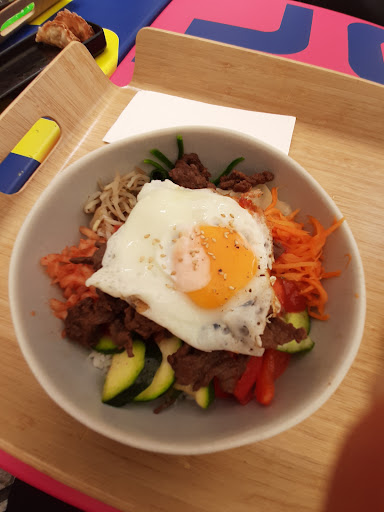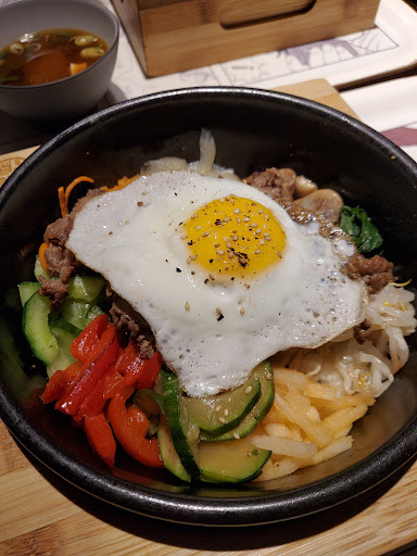 Really nice concept and location.. I had high expectation based on the reviews I saw. I ordered bulgogi bimbimbap + yangyeom chicken. Pls note you pay extra 1.50 for the fried egg, which usually is included at other places. There was no kimchi in the bimbimbap, it does not come with any banchan too, which is a norm in most korean restaurant. Food is fresh but taste average (vs. other Korean restaurants) & the portion is small, compared to the price you pay ; this could be due to the location. The soju which you can buy for less money at the Asian Markt is overpriced here at 9.90, not an issue for me but noticed this when I picked up a drink. If you're a foodie familiar with Korean cuisine & restaurants in Germany, I'm not sure you'll be impressed here. Concept is really cool with great service, I just wish they were more down-to-earth with pricing for the portions, serve the banchan, and less-dry more-juicy fried chicken. You can try it, but I won't be back since there are...