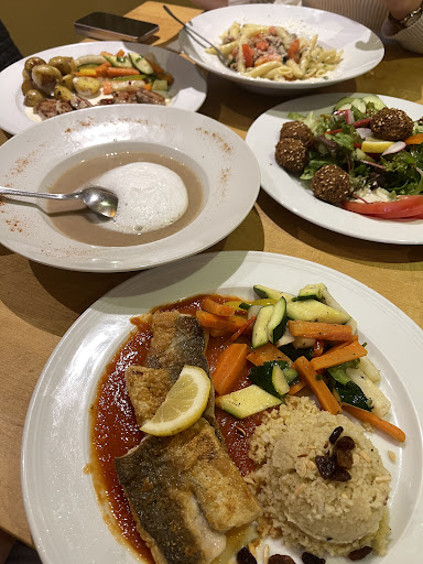 We went today for lunch with a whole group of colleagues (9 people).They were super friendly and organised to arrange a long table for us straight away. The menu was attractive and the waiter marvelous. He was by himself and the place was popular but he still managed to get to everyone in good time. We all enjoyed the food a lot. Especially the lamb and aubergine dishes were popular. The veggies were fresh and perfectly cooked. My favourite was the cinnamon spiced rice that came with the dishes. It was a cuisine mostly new to us but it was all very tasty and everyone polished off their plates, which speaks for itself.