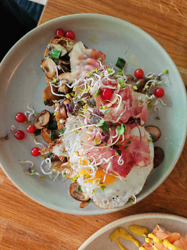Read moreSehr gutes Frühstück, freundliches, aufmerksames und kompetentes Personal, schneller Service, stimmiges Ambiente. Und vor allem: Es schmeckte alles gut (Brote mit Pilzen, mit Lachs und mit Avocado, Joghurt mit Granola, Tee-Limonade/Eistee, Kaffee. Lemon Cheesecake zum Abschluss geteilt). Oder kurz: Alles perfekt!