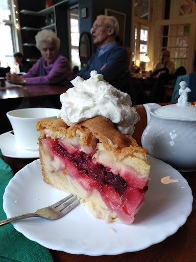 Ein Café mit britischen Charme, Kuchenstück teils Üppig, aber schon sehr teuer. Personal etwas gestresst und Tierlieb trotz zusätzlichem Trinkgeld nicht wirklich vorhanden.