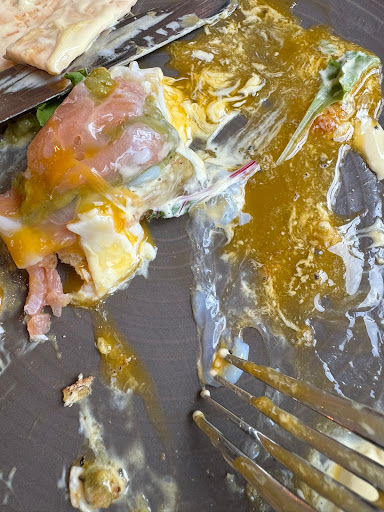 Read moreWir waren heute dort und hatten 2 mal das brioche mit Lachs und dem Ei Benedickt. Der Service war nett und anfangs aufmerksam. Nach 40 Minuten kam dann unser bestelltes Frühstück. (Lange Wartezeit bei nur 3 belegten Tischen)! Das gesamte Gericht war merkwürdig da es auf Burgerbuns angerichtet wurde. Geschmacklich nichts besonderes. Broiche wurde lange getoastet dadurch knusprig aber sehr trocken. Also nicht fluffig. Schade! Auf der Avocado lag eine Scheibe schabletten schmelzkäse die leider nicht auf dem bun lag dadurch nicht geschmolzen ist. Also sehr überflüssig und nicht passend zum gesamt Gericht. Das Eigelb war FLÜSSIG allerdings auch das EIWEIẞ. GEFÄHRLICH bezüglich Salmonellen!!!!!!!!! Siehe Bilder gekennzeichnet...