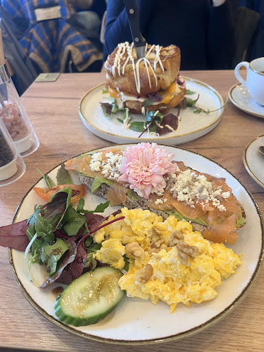 Crispy chicken with the brioche bun was very tasty, and I also ordered the avocado salmon toast with some scrambled eggs on the side and it was also good. I just donât really understand why they put huge flowers on top of every food, not all of them look nice tbhđ