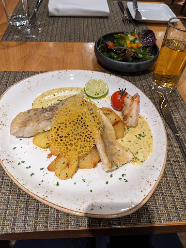 Read moreVon der Begrüßung am Restaurant Empfang bishin zur Bezahlung ein sehr angenehmer Abend. Das Personal ist super freundlich und sehr aufmerksam, eine Servicekraft ist mindestens Nähe in der Nähe des Gastes immer im Sichtweite, sodass stehts auf das Geschehen geachtet wird. Die Terasse wo ich mein Abendessen eingenommen habe, hatte einen sehr gepflegten Eindruck hinterlassen, sowohl als auch das Restaurant, besonders gefallen hat mir die Sicht auf die offene Küche, sodass man das Geschehen hinter den Kulissen als interessierter nachverfolgen kann. Bestellt wurde das Hanburger Scnitzel vom Nussschwein, dazu wurde mir ein kleiner gemischter Salat serviert, der von der Optik, sowohl als vom Geschmack völlig ok war, nicht zu viel und nicht zu wenig. Als Beilage zu meinem Hauptgang wurden mir Bratkartoffeln serviert, die meinen Erwartungen entsprochen haben, außen knusprig und innen noch leicht Soft; kein Öl durchtrieftes Produkt. Als gesamte Abrundung des Gerichtes gab es noch ein Toast mit Nordseekrabben, Cocktailsoße und einem Setztei dazu. Unterm Strich, bin ich von Angebot dieser Gastronomie, begeistert und kann es gutem Gewissen weiterempfehlen. Das Hotel selber macht einen Eindruck der in Erinnerung bleibt, sauber, gepflegt und in seinem eigene Stil, nicht prozig,...