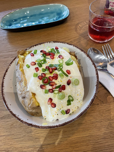 We wanted a slightly different version of kumpir, with an egg on top, and it was gladly done specially for us. The food (kumpir, sides, couscous, vegetables) was super tasty and coffee, made from bio beans, so good that it left me speechless.