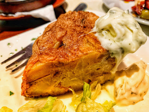 Read moreDie Plätze sind eng auf eng gestellt.Wir wurden nach den Getränkebestellungen nicht weiter beachtet. Nach 47 Minuten haben wir den Kellner ranwinken müssen. Es gab für drei Personen drei kleine Hackklöschen in Tomatensauce und drei Hackklöschen in Mangosauce. Dazu kam eine Auswahl an Fisch. Davon war eine Tapas völlig versalzen, die Calemaris waren nur fettig. Dazu kam eine Antipastiplatte. Der grüne Spargel und die Möhren waren roh , die Aubergine war okay. Die Natas waren mit Fritierfett vollgesogen. Die Tortillia Espanola schmeckte völlig ungewürzt nach nichts. Hinzu kam dass auch unser Alijoli sehr spät nachgeliefert wurde. Der Wein war mit Schraubverschluss in einer defekten Karaffe wenig temperiert serviert worden, ohne uns diesen vorzustellen und einzuschenken . Es wurde kein Tafelwasser dazu gereicht, geschweige im laufe des Abends gefragt ob wir etwas trinken möchte. Der zweite Kellner war pampig und unfreundlich. Ob es geschmeckt hat wurden wir auch nicht gefragt. Allem im...
