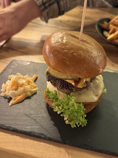 Read moreDas ist das erste Mal, dass ich eine Bewertung schreibe, aber jetzt muss es sein, denn das Essen hier wird uns leider noch lange in Erinnerung bleiben. Ich bestellte einen "Chicken Avocado Burger," der wie der Name schon sagt, Avocado bzw. Guacamole enthalten sollte. Es kam ein weiches, oben leicht matschiges Brötchen (hatte "Krossi" bestellt), das dünn mit einer Art Mayo bestrichen war und mit einer Art Chicken Nuggets einem Salatblatt, einer Tomatenscheibe und ein paar Granatapfelkernen gefüllt war. Entsprechend trocken war das Ganze und ohne Getränk kaum runterzubekommen. Nachdem ich die Guacamole gesucht und in einem weniger als fingernagelgroßen Stück gefunden hatte, sagte ich freundlich Bescheid, dass man die Soße vergessen hätte. Die Bedienung ging zweimal in die Küche, kam dann wieder, um beim ersten Mal zu vermelden, dass da Guacamole drauf sei, beim zweiten Mal um auf mein auseinandergebautes Brötchen zu gucken und nochmal zu erklären, dass da Guacamole drauf sei. Bei dritten Mal kam der (offenbar) Koch oder Küchenchef, ein älterer Mann, der mit den Fingern in meinem Teller herumwühlte, einzelne Bestandteile griff und dann mit denen in der Karte erwähnten Zutaten verglich. Die Guacamole sah er in dem fingernagelgroßen Stück abgedeckt. Leider versäumt ich in dem Moment aufzustehen und zu gehen, war zu schockiert von den Fingern im Essen. Er kam dann mit einer Plastikspritztüte mit Guacamole an den Tisch und spritzte eine etwa 5cm lange Schlange auf das eben von ihm auseinandergepflückte halbe Brötchen. Ein Wort noch zu dem "Bratkartoffelsalat": Es kam ein in Soße ertränkter grüner Salat, auf dem sechs frittierte Kartoffelscheiben lagen...