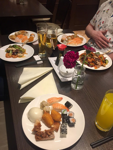 The dominant flavour of the sushi was sweet (very sweet to my liking), obviously because they put too much sugar in. It also didn't taste fresh, at all. The positive side is that they serve a wide variety of sushi. If you don't like the fusion ones (for example they have sushi with coconut on top, or the fried ones with only-God-knows-what inside), you can go with the basic ones. They would charge you €0.50 per piece of sushi that you can't finish, so I'd say, take a few and try it before you go crazy. The warm dish was, to put it simply, flavourless. We've tried almost every dish, and we'd recommend only sweet & sour pork, fried salmon and fried noodles. No, no, not because they tasted THAT good, but because they were just slightly better than the other dishes. I had to put chilli sauce and soy sauce to help me finish my plate.