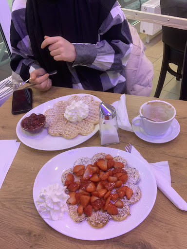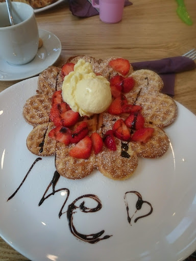 Wir waren zu zweit da, je mit kleinen Kind dabei. Gegen 14 Uhr an einem Wochentag. Es waren 4 Tische besetzt. Um die Waffel Bestellung aufzunehmen, bekommen wir ein Zettelchen auf dem Wir einfach ankreuzen konnten, was wir möchten. Das fand ich eine super Idee, hat leider nichts gebracht. Wir haben eine Waffel mit drei Zutaten bestellt, trotz Zettel hat eine davon gefehlt. Auch der Wunsch, die Zutaten neben die Waffel zu legen, damit das Kind besser essen kann. Wurde nicht berücksichtigt.