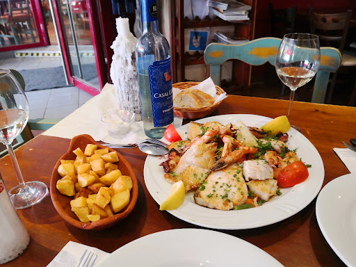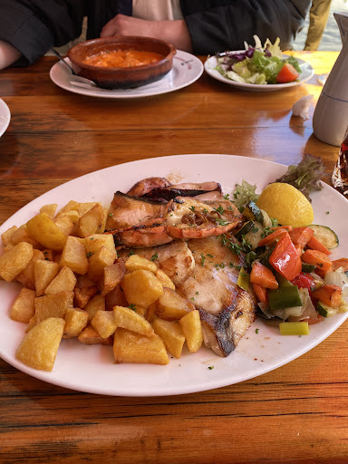 Read moreVery good Portuguese food! The mixed fish with squid surprised us so much. We ordered the shrimps with brandy sauce and it was good but not so well served and we ordered rice on the side. Great environment where you can sit outside on hot days and order some wine (we ordered the white wine with 400ml that was served on a jar and it was totally worth it for 9,50€). Great service and the waiter spoke German, Portuguese and English. Good and clean bathroom with free tampons, deodorant and good toilet paper....
