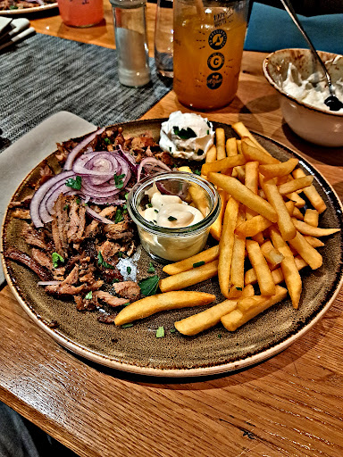 Der Gyros war perfekt gegart, das Fleisch von hoher Qualität - ein wahrer Genuss. Nicht überwürzt - einfach gut. Die Bifteki toppte das Gyros noch - nicht überbraten - sondern einfach den Schmelzpunkt des Feta mit dem Garpunkt des Rinderhacks in Symbiose gebracht - muss man können, kann nicht jeder.