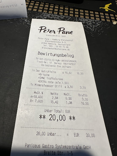 Read moreHit up Peter Pane in Hamburg, ready to chow down on some burgers with high hopes. Ended up with a pair of burgers that left us feeling a bit meh – like when you're hyped for a movie, and it turns out just alright. The meat was on the Sahara side of dry, and the cheese? Let's just say it had more in common with fast food joints than gourmet grub. Salad was like a cameo appearance – there one moment, gone the next.