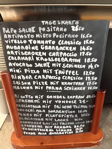 Auf unsere Getränke warteten wir fast eine Stunde. Nach einer weiteren längeren Wartezeit wurde uns die Vorspeise serviert. Das Essen und der Wein waren, im Vergleich zu anderen italienischen Restaurants nicht gut. Der Ziegenkäse war lieblos zubereitet und die Portion eher klein. Die Baby Calamari waren trocken, zum Teil verbrannt und qualitativ im unteren Bereich. Für 4 Vorspeisen, eine Flasche Wein und zwei Flaschen Wasser wurden uns 105€ in Rechnung gestellt.
