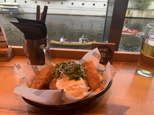 The first time good service, friendly and young waiter, we ordered ratsherrn fries as in the picture and Rot Beer. We loved it, good crowd and waterfront seating.
